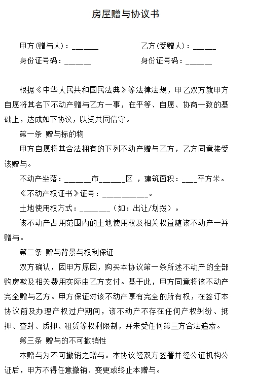 房屋赠与协议书