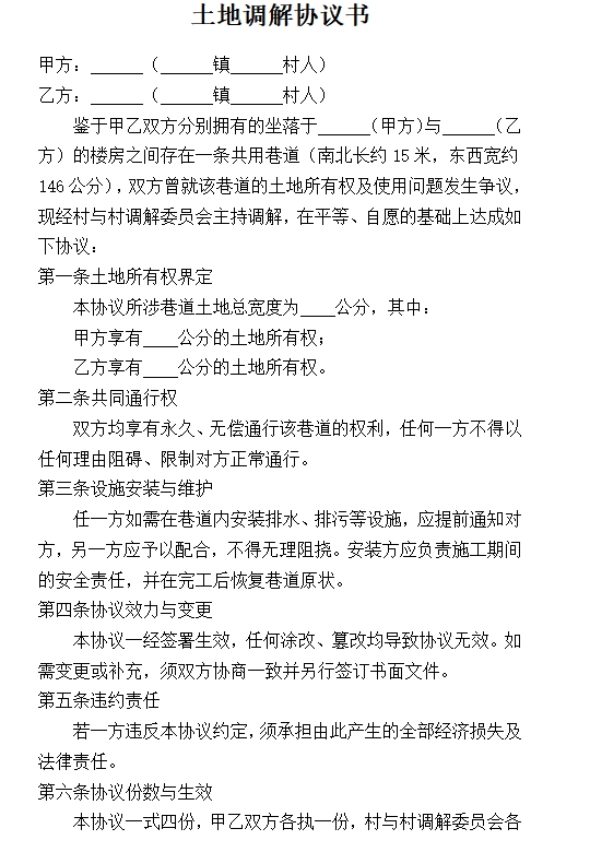 土地调解协议书
