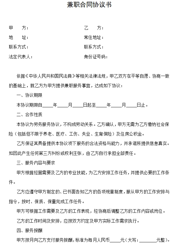 兼职合同协议书