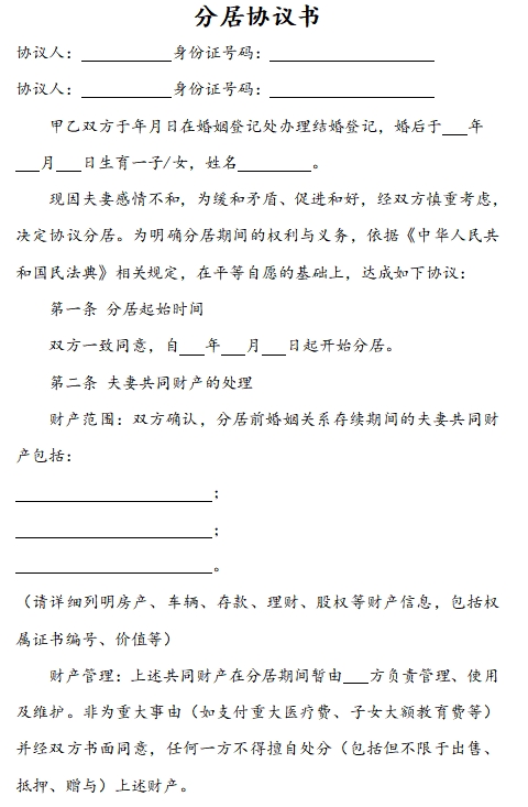 分居协议书