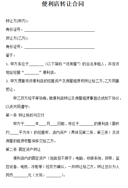 便利店转让合同