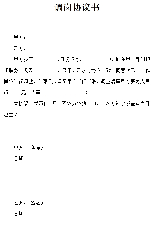 调岗协议书