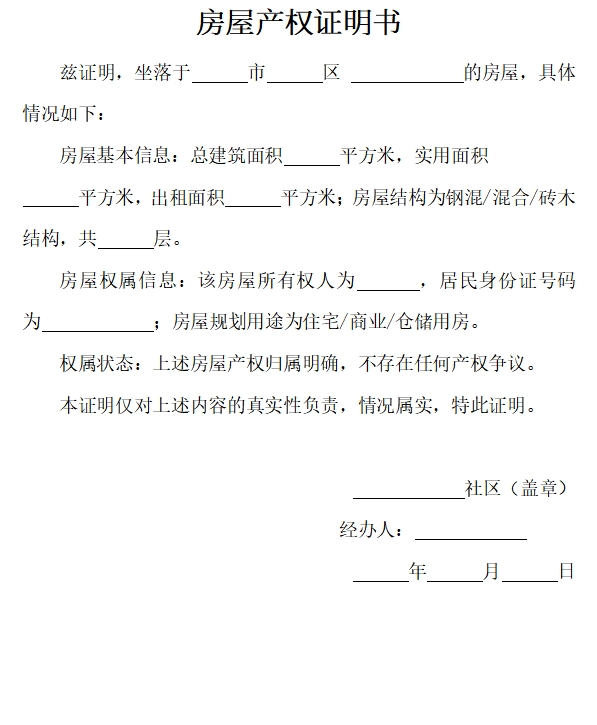 兹证明,坐落于 市 区 的房屋,具体情况如下: