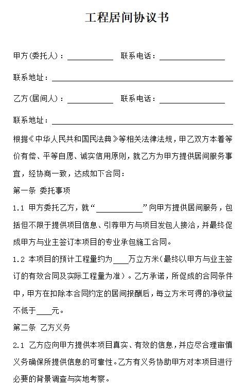 工程居间协议书