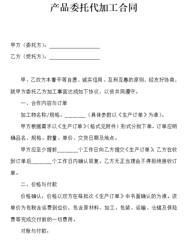甲、乙双方本着平等自愿、诚实信用、互利互惠的原则,经友好协商,就甲方委托乙方加工事宜达成如下协议,以资共同遵守。