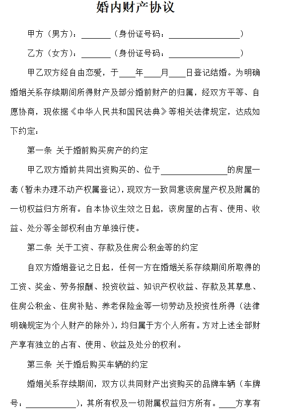 婚内财产协议