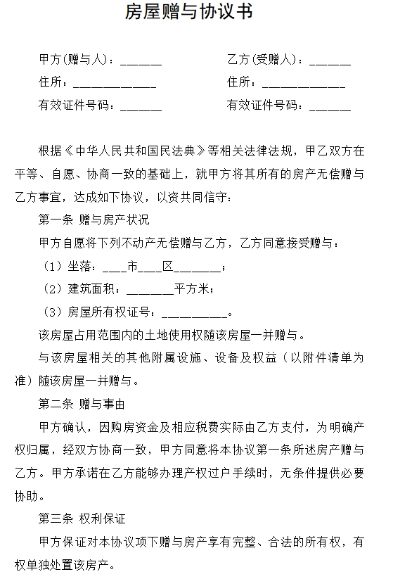 房屋赠与协议书