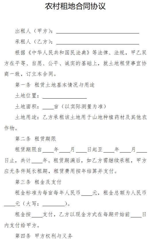 农村租地合同协议