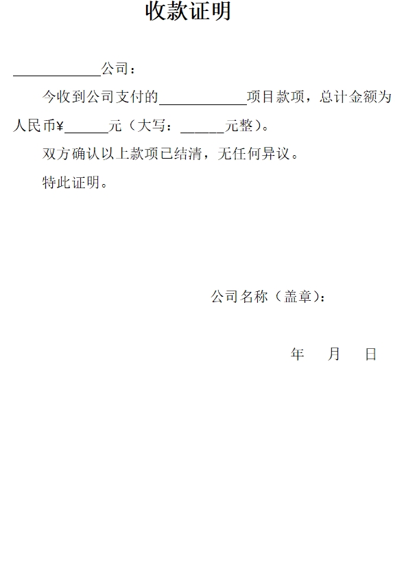 今收到公司支付的 项目款项,总计金额为人民币¥ 元(大写:______元整)。