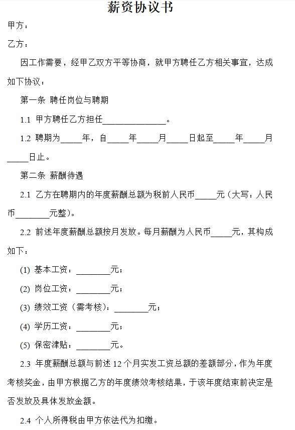 薪资协议书