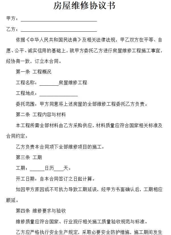房屋维修协议书