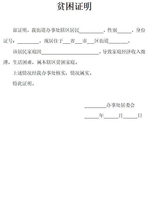 兹证明,我街道办事处辖区居民 ,性别 ,身份证号: ,现居住于 省 市 区街道________。