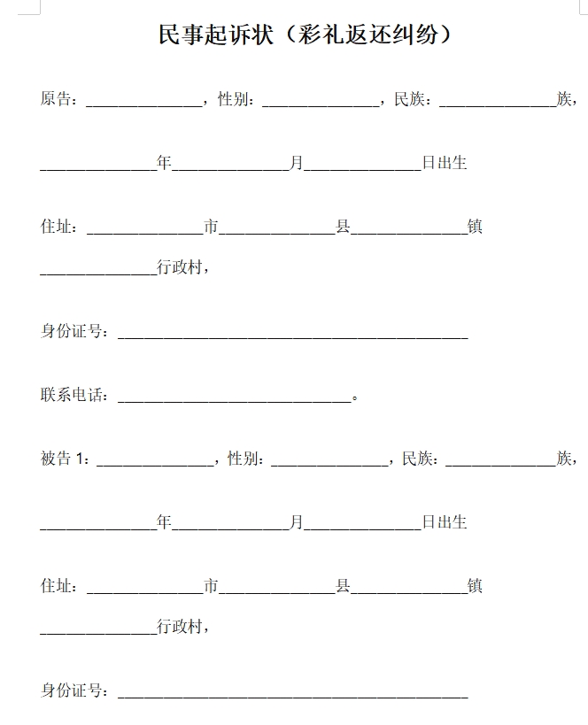 民事起诉状(彩礼返还纠纷)