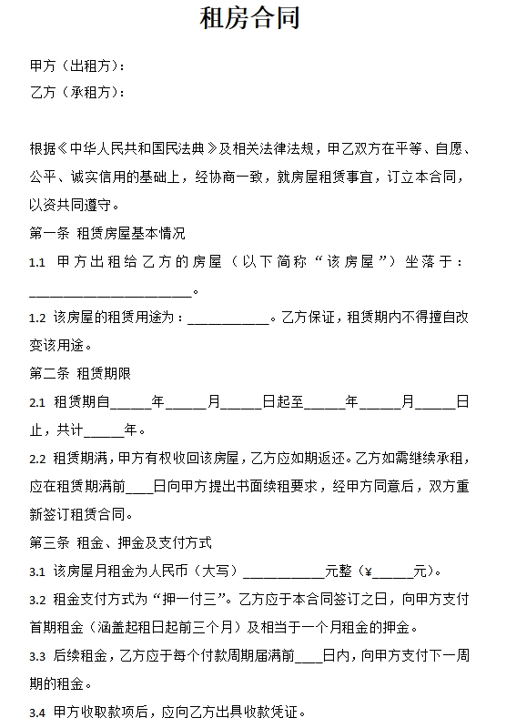 根据《中华人民共和国民法典》及相关法律法规,甲乙双方在平等、自愿、公平、诚实信用的基础上,经协商一致,就房屋租赁事宜,订立本合同,以资共同遵守。