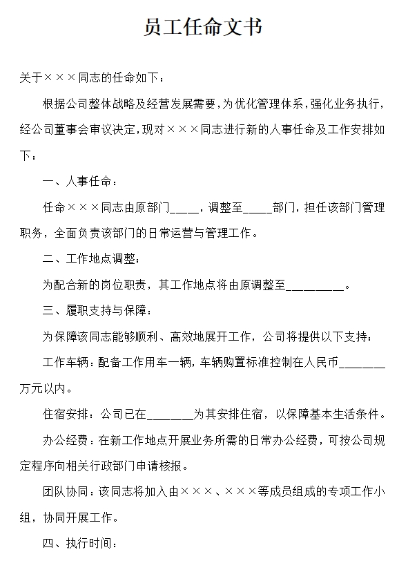 员工任命文书