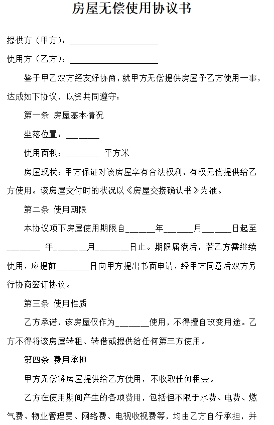 房屋无偿使用协议书