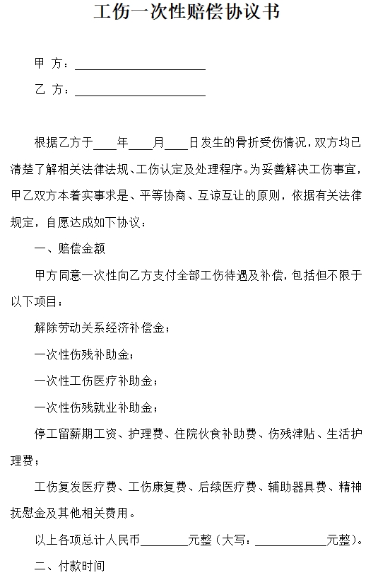工伤一次性赔偿协议书
