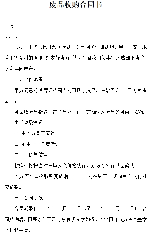 废品收购合同书