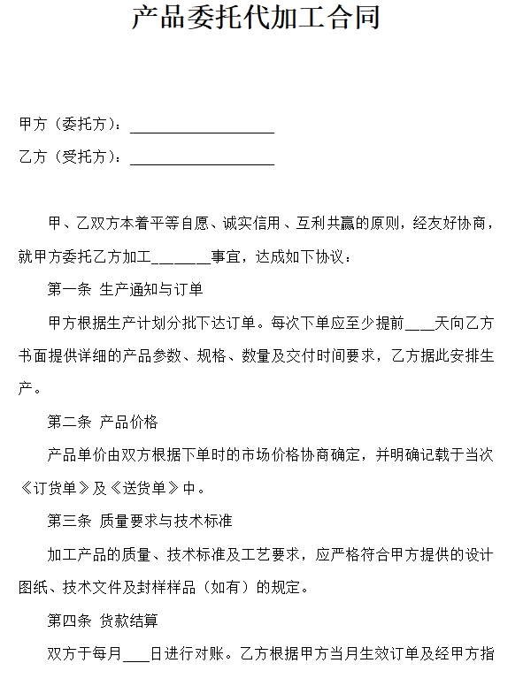 产品委托代加工合同