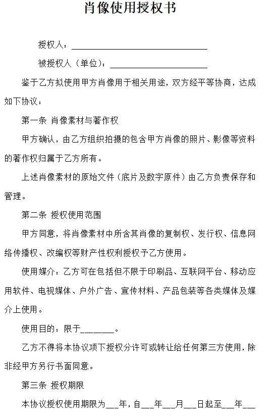 肖像使用授权书