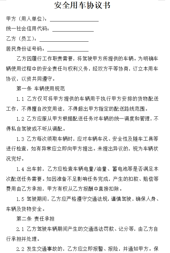 安全用车协议书