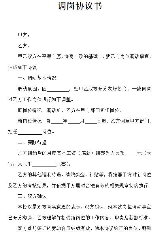 调岗协议书