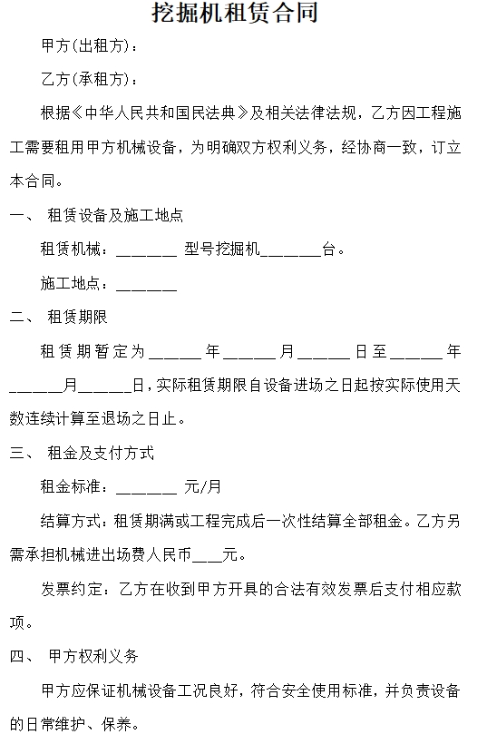 挖掘机租赁合同