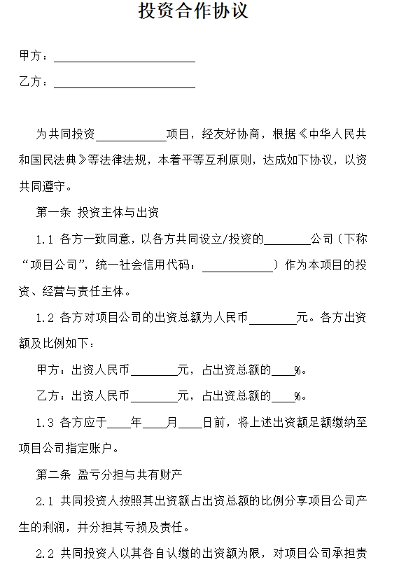 投资合作协议