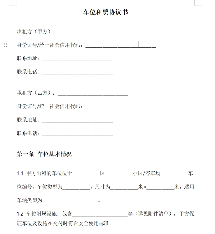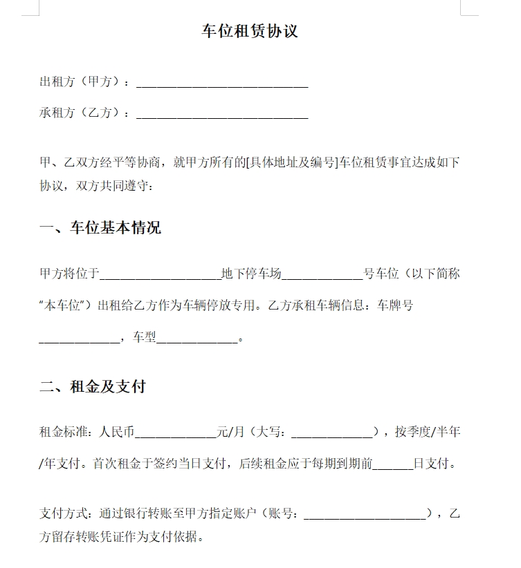 车位租赁协议