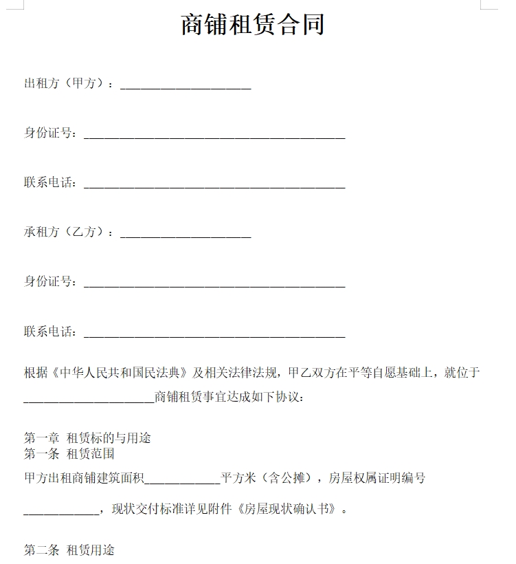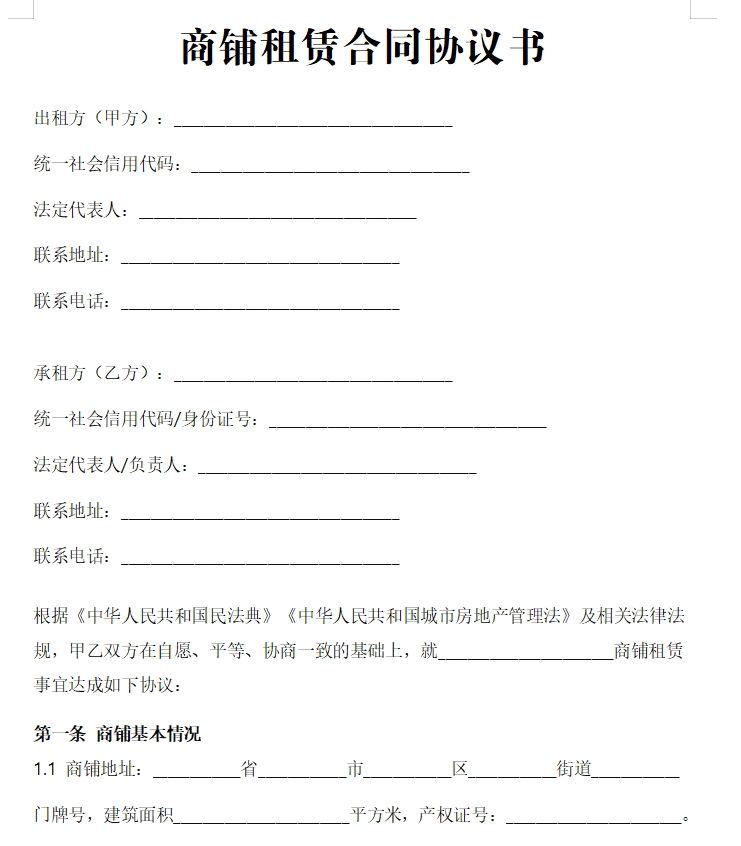 商铺租赁合同