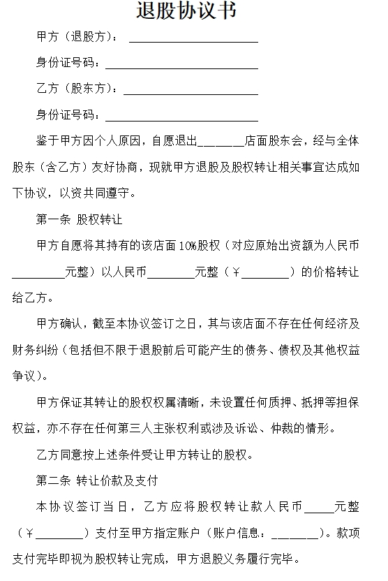 退股协议书