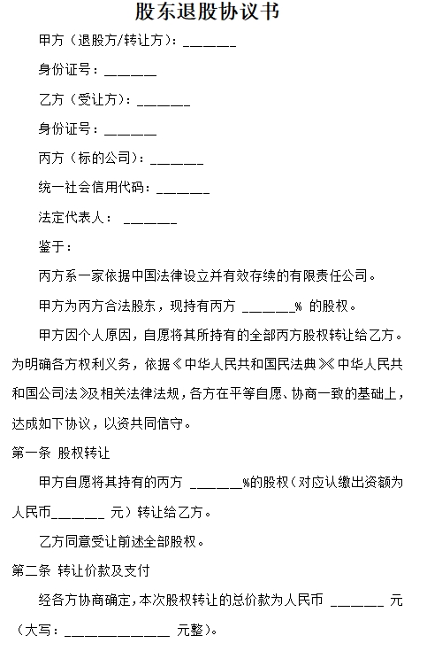 股东退股协议书