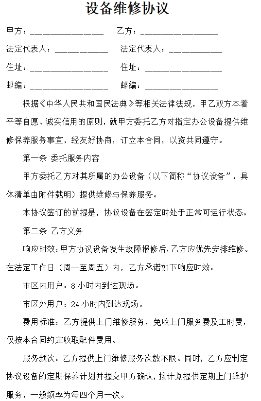设备维修协议
