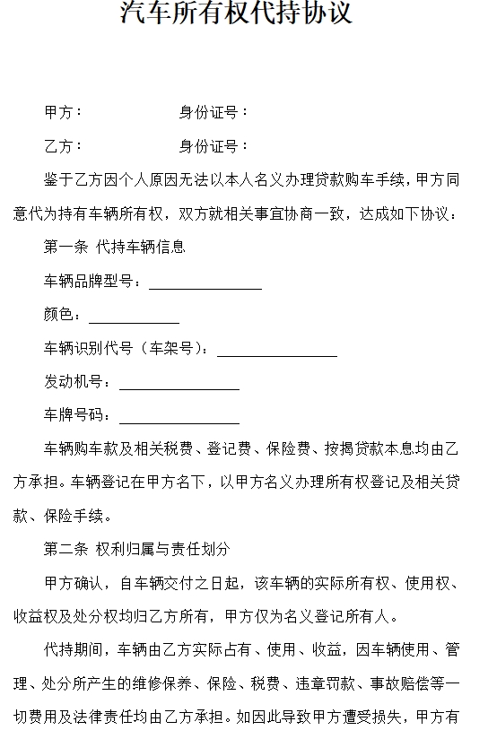 汽车所有权代持协议