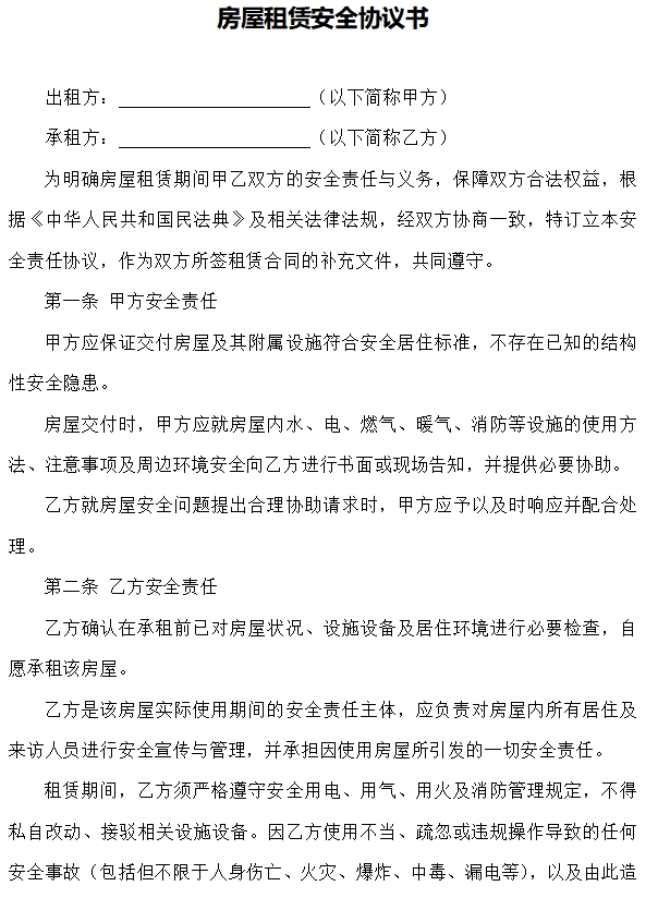 房屋租赁安全协议书
