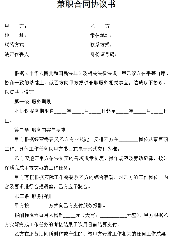 兼职合同协议书