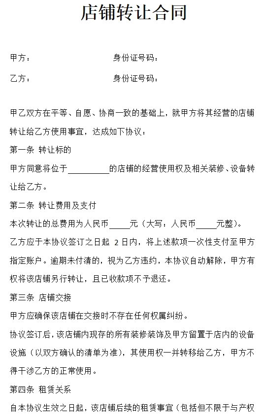 店铺转让合同