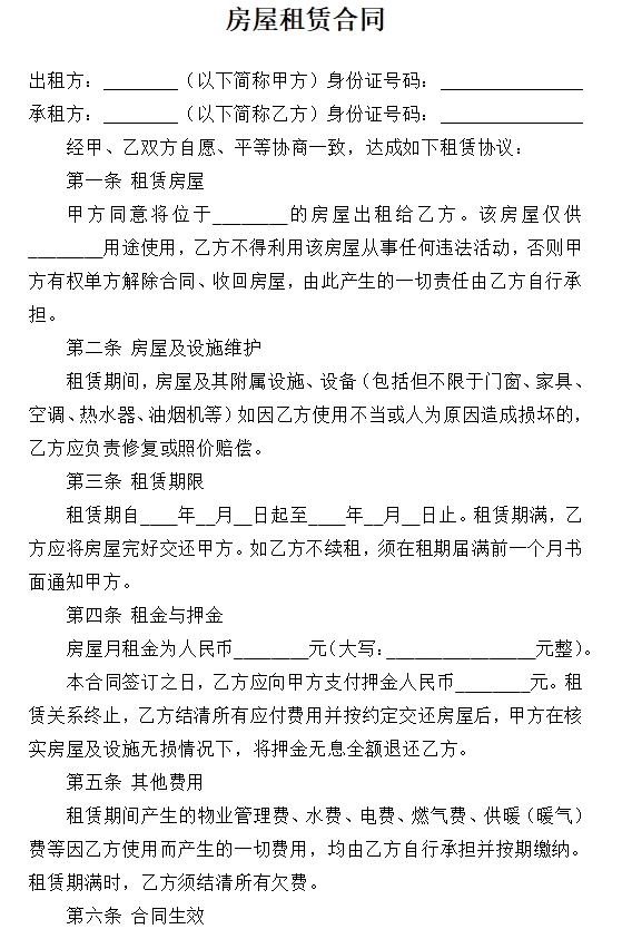 房屋租赁合同